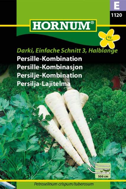 Mix av persilja-/persiljerotssorter på ett praktiskt såband. Innehåller: