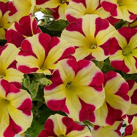 Amore-Serien är en fantastisk samling av petunior där varje blomma är dekorerad med hjärtan. De har en lång blomningstid och ett enhetligt, kompakt växtsätt med halvt hängande rankor. 'Queen of Hearts' blommor är ljusgula med varmrosa till röda hjärtan på.