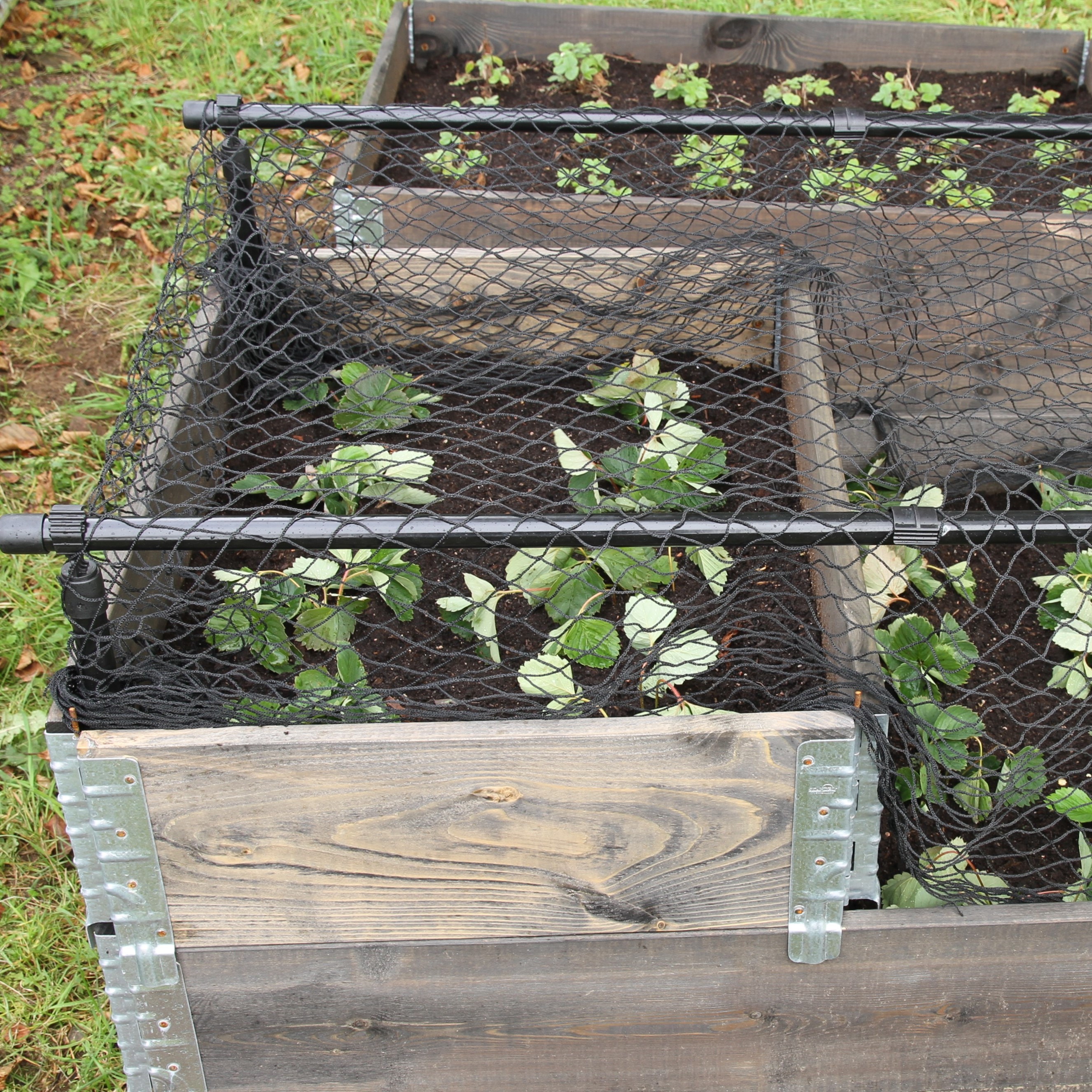 - Täck över med nät, fiberduk eller plast och lås fast med klämmorna