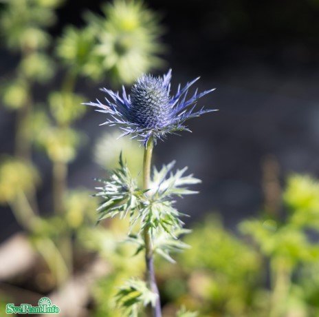 Praktmartorn med stora, stålblå tistellika blommor. Högväxande med upprätt arkitektoniskt växtsätt och silvriga blad. Gillas av fjärilar och andra pollinerande insekter. Hållbar snittblomma. Kan torkas till eternell. Vacker vintersilhuett.