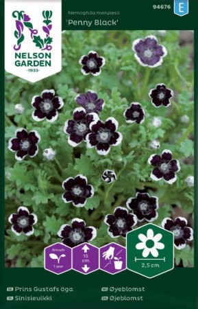 Prins Gustafs öga 'Penny Black' är en fin marktäckande sommarblomma som blommar i mörkt purpurlila som nästan ser svart ut. De mörka blommorna förstärks av en silvervit kant ytterst på kronbladen. Bladen är finflikiga och små. Plantorna är kompakta och blir cirka 15 cm höga och växtsättet är utbrett och lågt. Sorten är mycket fin i krukor, rabatter och stenpartier och passar utmärkt i samplaneringar tack vare sin mörka och lite ovanliga färgsättning. Prins Gustafs öga är anspråkslös men trivs bäst på sandiga och luckra jordar i sol- halvskugga. Vattnas vid torra perioder. Sorten kan både förodlas och direksås. Vid förodling inomhus sås den i april och vid direktsådd sås den i april - juni för att sedan blomma i juni-augusti.