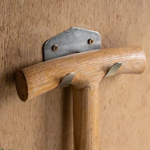 En krok i rostfritt stål för att kunna hänga upp redskap.