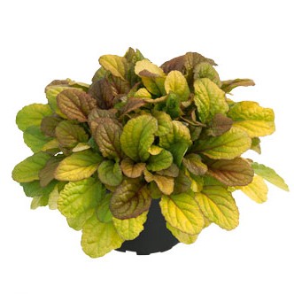 Bildar matta, kryper iväg med rotslående revor, utlöpare. Bladen är äggrunda, glänsande, bubbliga och ljusgröna med bronstoner. Blommorna är mörkblå och sitter i kransar i ax i stjälktoppen. Blommar i maj-juni.