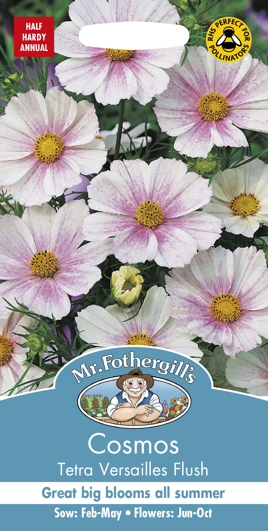 Vacker rosenskära som får stora ljusrosa blommor med mörkare mitt. Sirligt, finflikat bladverk. Kraftigväxande. Passar som snittblomma. Gödsla sparsamt, annars blir det mer blad och färre blommor. Putsa bort vissna blommor efterhand. Kan behöva stöd.