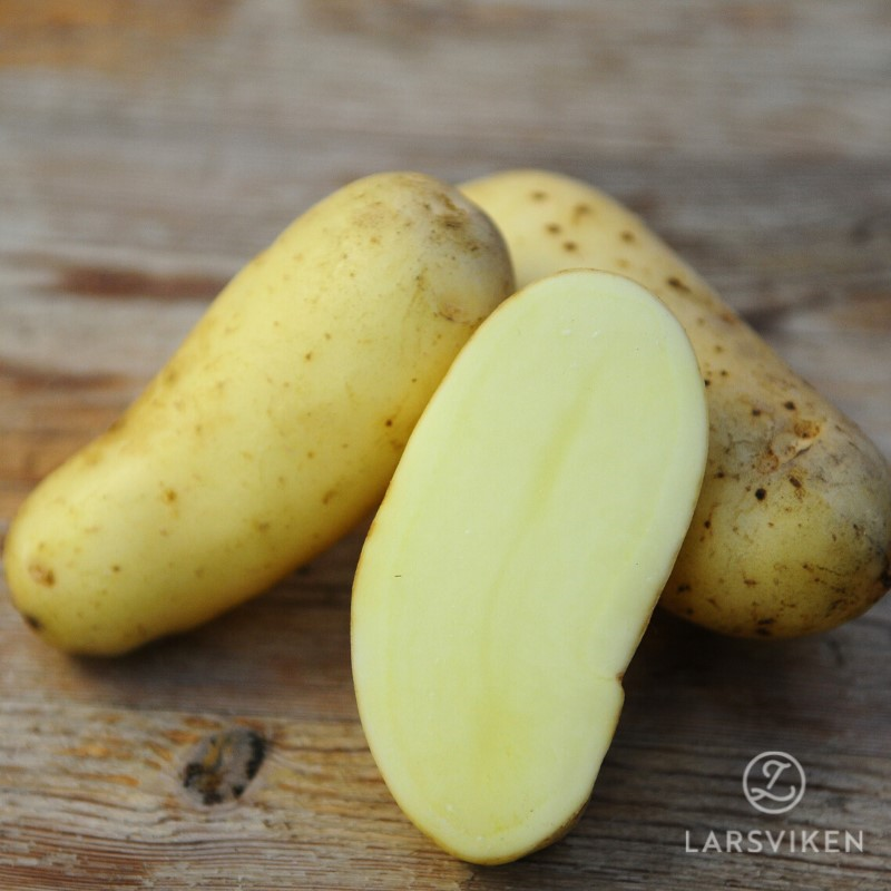 Tänk att allt kan rymmas inom en potatissort, från tidig späd primör till höstens bakpotatis. Framtagen i Frankrike år 1994. Utsedd till Årets Potatis 2011. Amandine är resistent mot potatiskräfta ras 1.