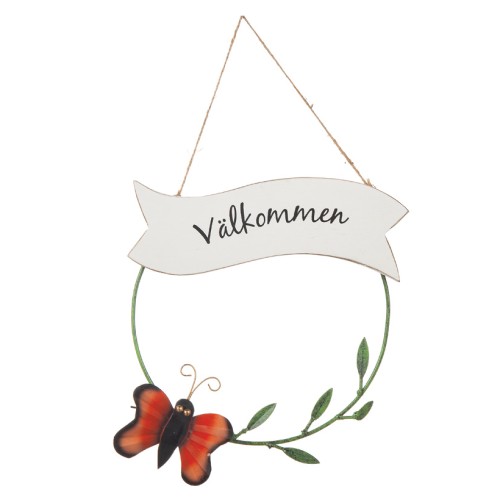 Artikelnummer: DD4051_RodSkylt 'Välkommen' Fjäril Röd 23cm