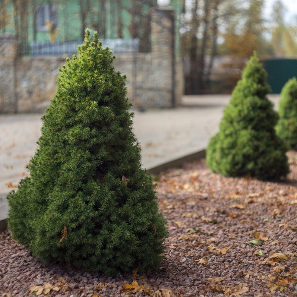 Koniskt formad liten gran med friskt gröna, korta barr som sitter tätt packade på grenarna. Mycket dekorativ och blickfångande. Passar som solitär eller i grupp. Tålig och härdig och klarar ofta att övervintra i kruka utomhus.