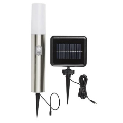 Den är soldriven, vilket innebär att det inte finns något behov av nätström. Med inbyggd rörelsesensor är denna moderna pollare perfekt för att lysa upp områden runt ditt hus och din trädgård.