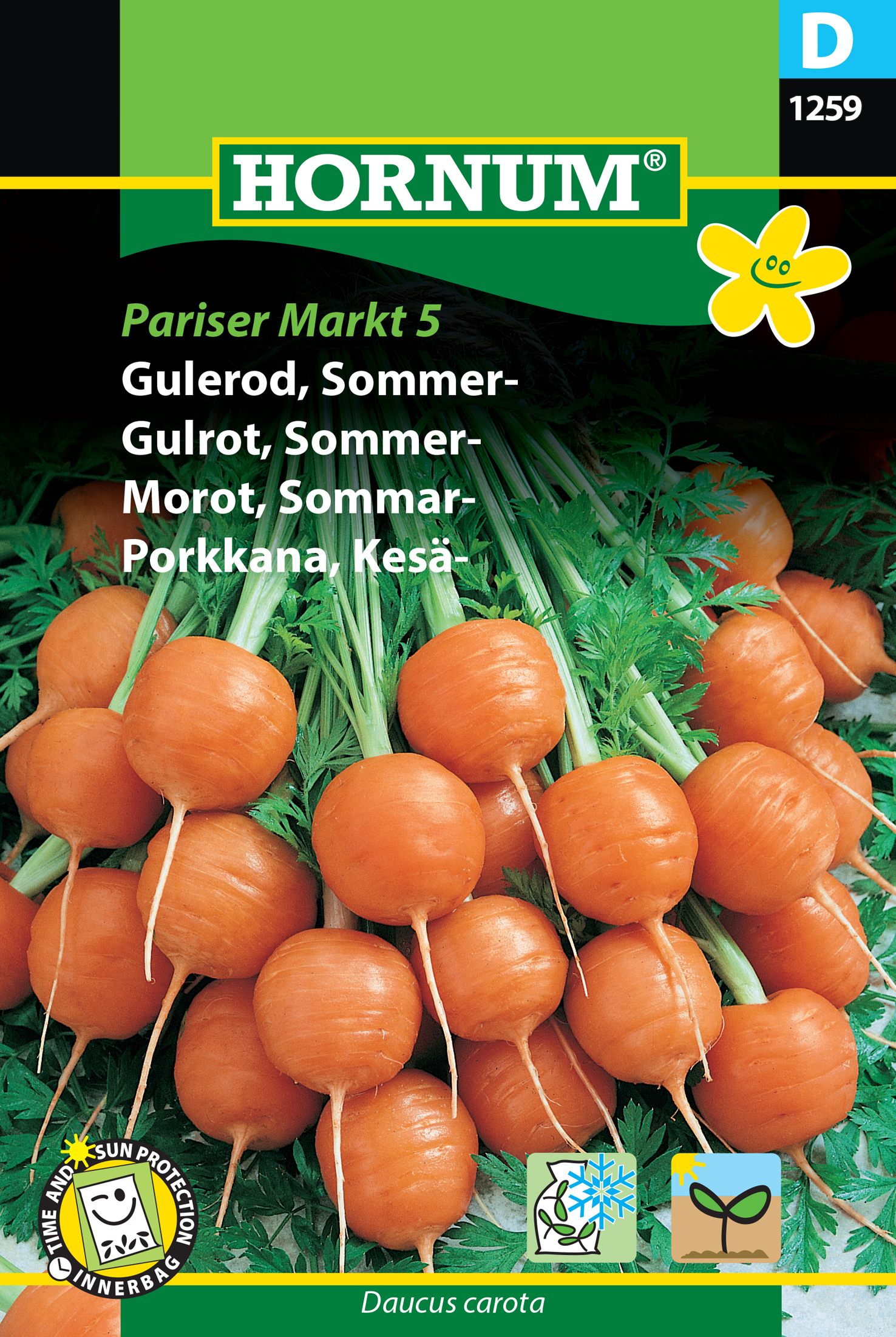 Mycket tidig sort. Rund morot. Partysnacks. Ger riklig skörd och är en pålitlig sort. Får små, runda, orangefärgade morötter med en underbar smak. Skördas väldigt tidigt. Idealisk för användning i det kinesiska köket. Får inte sås för tätt. Trivs i sol till halvskugga i en djup, porös, humus- och näringsrik sandjord. Håll jorden lätt fuktig efter sådden tills groningen har kommit igång.