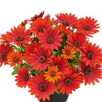 Stjärnöga 'Summersmile Sangria' är en storblommig, enkelblommande sommarblomma med rödbrun färg.