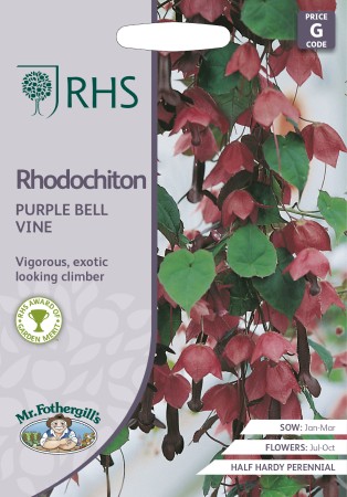 Törnrosas kjortel klättrar med långa sirliga rankor fyllda med hjärtformade tandade blad. Rankorna växer snabbt och täcker snart en spaljé. Spridda över plantans rankor dinglar vackra, mörkt purpurfärgade blommor med foderblad som liknar rosa kjolar. Plantan blommar länge och bildar nya blommor vartefter rankorna växer. Plantera i stor kruka fylld med näringsrik jord. Plantan behöver även ett växtstöd.