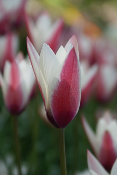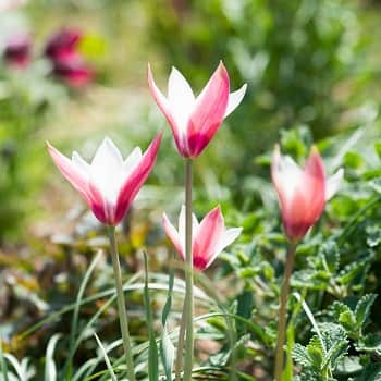 Tulpanen 'Peppermint stick' är en liten tulpan med långsträckta blommor i polkagrisfärg. Insidan förblir vit. En underbar och uppseendeväckande tulpan.
