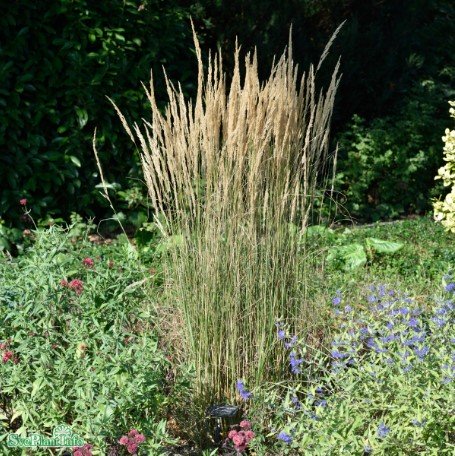 Upprättväxande prydnadsgräs. Gulstrimmiga blad. Bruna vippor i juli-augusti. Sol-halvskugga. Trivs på de flesta jordar.