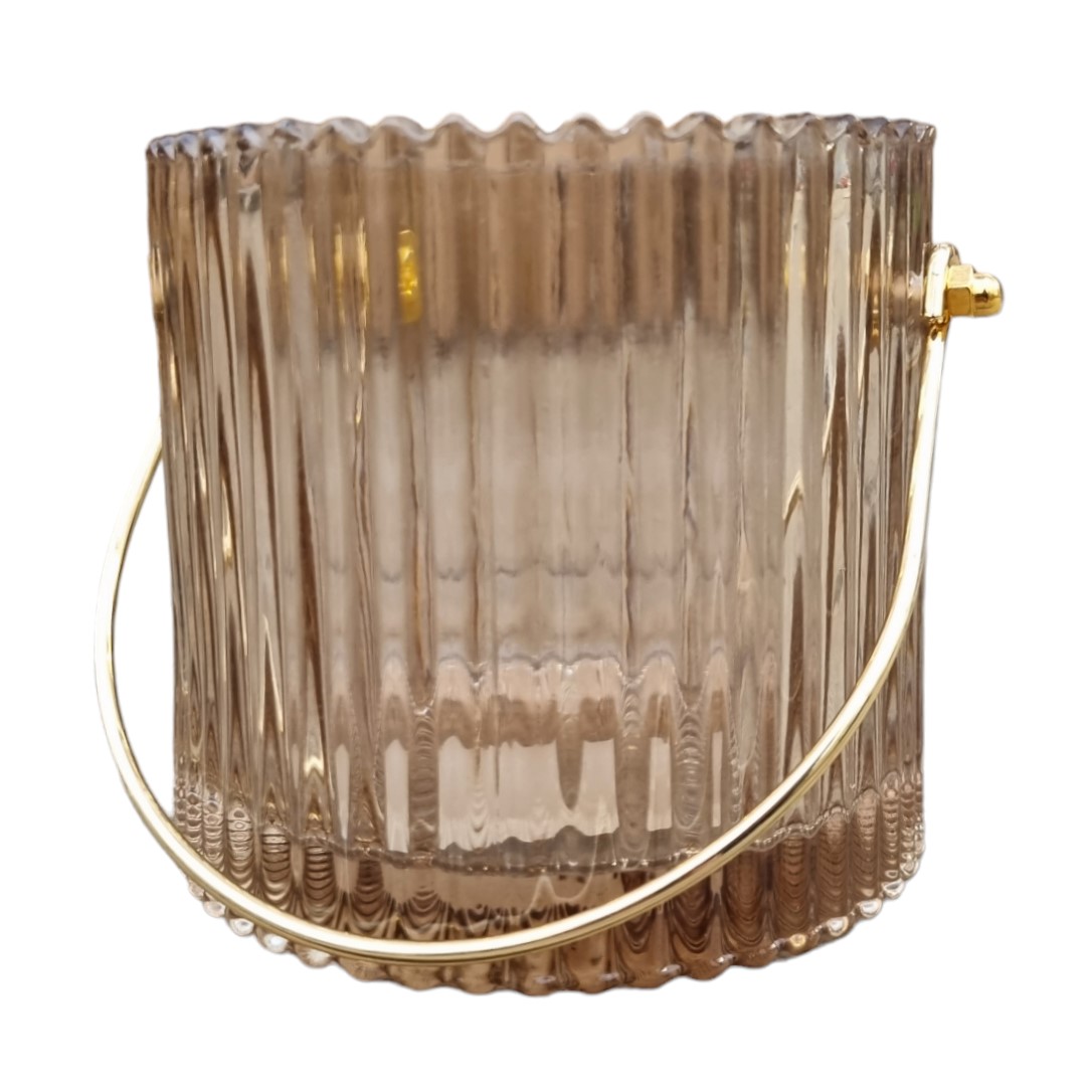 En stilren värmeljushållare i glas med handtag. Fungerar lika bra som värmeljushållare som att göra planteringar i.