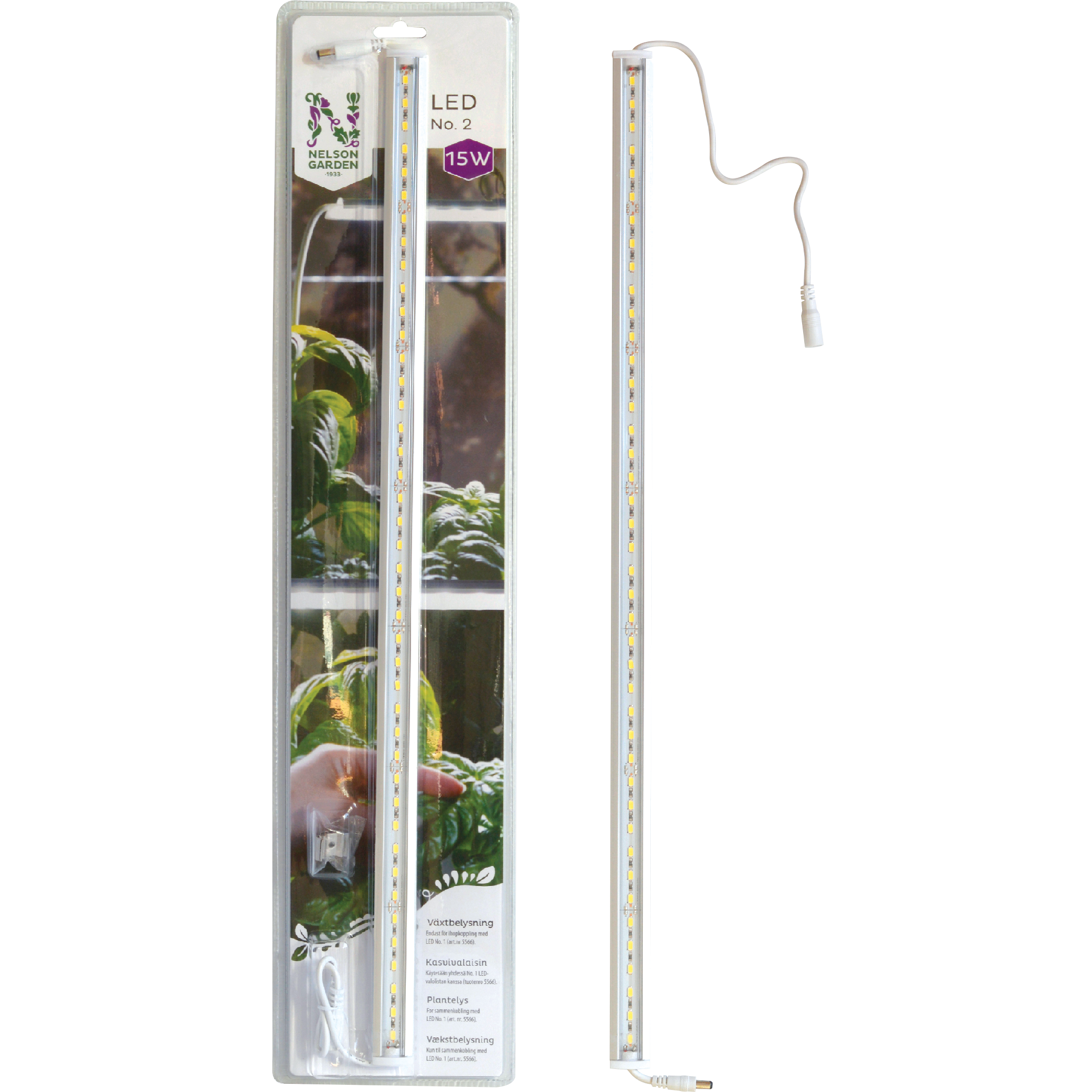 Växtbelysning LED No.2 60cm från Nelson Garden är en energisnål LED-ramp utan adapter. Denna produkt kan enkelt kopplas ihop med en växtbelysning med adapter. Då används LED No. 1 15W (NG5566).