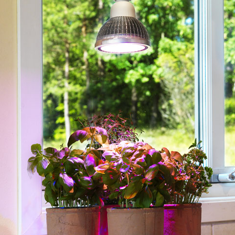 Växtlampa med fullspektrumljus. Speciellt framtagna LED chip med optimerade våglängder som stimulerar fotosyntes och klorofyllbildning. Används för uppdrivning av plantor, som ljustillskott under de mörka årstiderna, blomningskontroll, eller inomhus där solljus saknas helt. Täcker ca Ø 60cm.