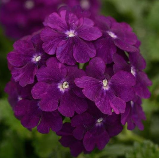 Verbena växer tätt, upprätt och med ovala till äggrunda, tandade blad. Blommorna är mörkt lila och sitter i klasar i grentopparna. Verbena fungerar bra i kruka och ampel. Köldtålig och motståndskraftig mot mjöldagg. Lättodlad.