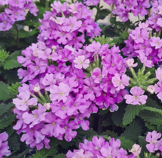 Verbena växer tätt, upprätt och med ovala till äggrunda, tandade blad. Blommorna är lavendelfärgade och sitter i klasar i grentopparna. Verbena fungerar bra i kruka och ampel. Köldtålig och motståndskraftig mot mjöldagg. Lättodlad.