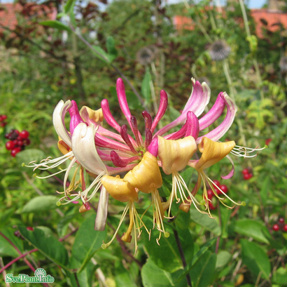 En kraftigväxande sort med mörktgröna blad och får gul-röda blommor med fin, stark doft. Blommar under juni-augusti. Blomdoften sprider sig i omgivningen på kvällen. Efter blomningen kommer röda bär som är giftiga. Fin på pergola, plank och spaljéer eller låt den slingra upp mot ett träd.