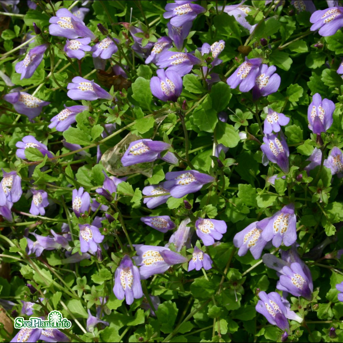 Söta, blåvioletta blommor under våren på en planta med revande, hängande växtsätt. Små, friskt gröna blad. Marktäckande växt från Himalaya. Sprider sig med ovanjordiska utlöpare. Vacker tillsammans med andra vårväxter i kruka eller ampel, där den kan hänga över kanten. Även som trampväxt mellan stenplattor.