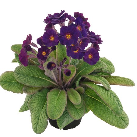 Mörkt purpurvioletta blommor med lysande orange öga. En ädel violviva som attraktivt lockar uppmärksamhet med långvariga blommor som sitter på stjälkar ovanför det mörkgröna bladverket, vilket skapar ett elegant och naturligt utseende. Svalt om natten förlänger blomningen.