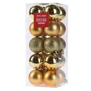 En fin mix av guldiga julgranskulor för att till exempel pynta julgranen med. I mixen ingår klara, glittriga och frostiga kulor. Totalt 20st.