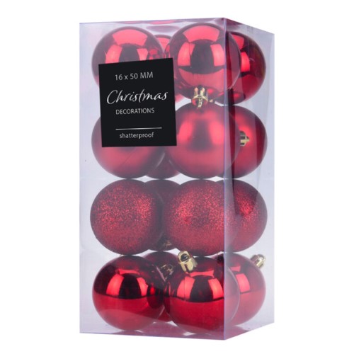 En fin mix av röda julgranskulor för att till exempel pynta julgranen med. I mixen ingår klarröda, glitterröda och frostigt röda kulor. Totalt 16st.